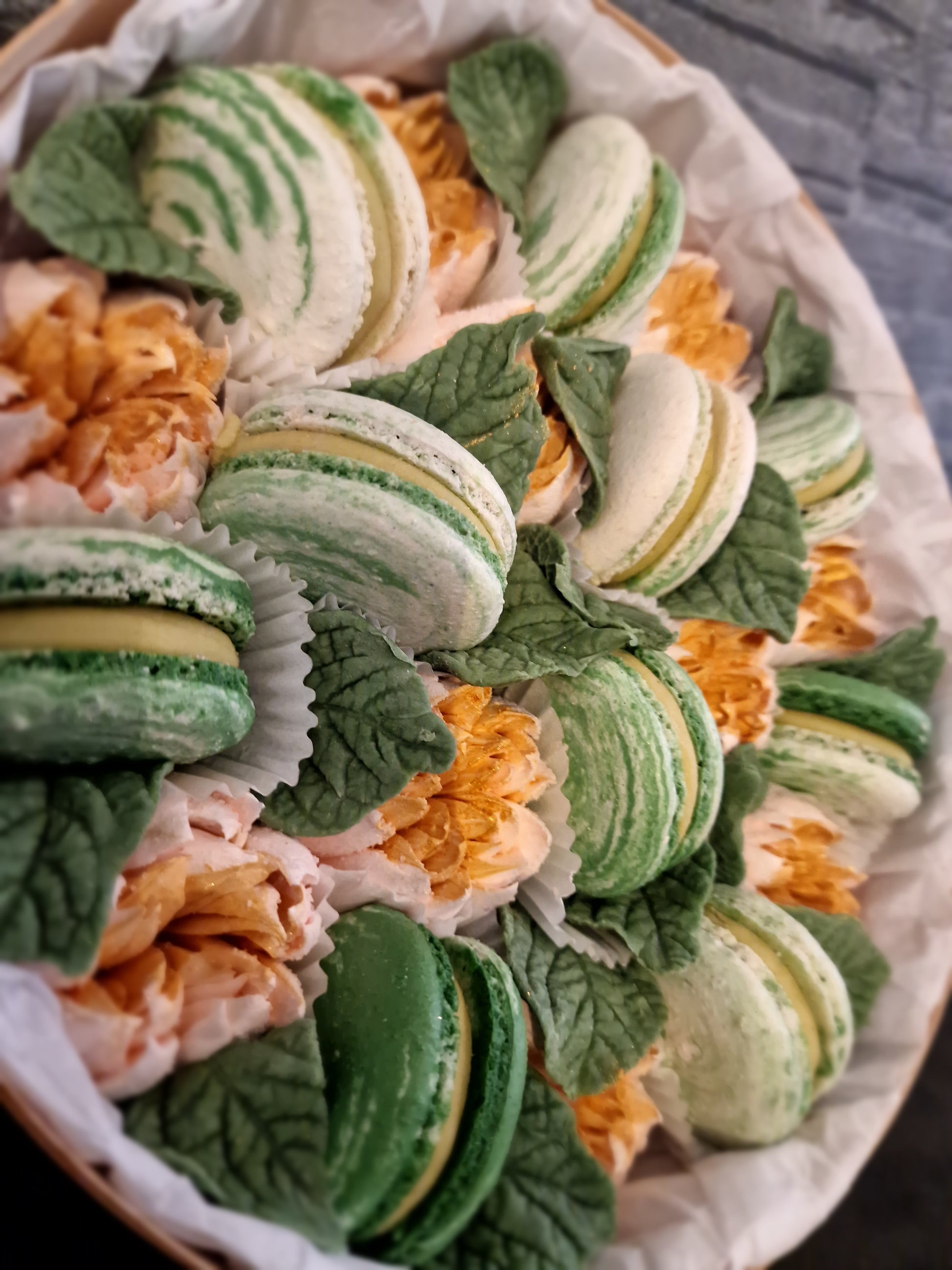 Laat je verleiden door de combinatie van smaak, kleur en elegantie met onze groene macarons met pistacheganache!